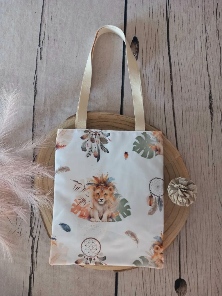 Tote bag enfant lion boho / vert clair